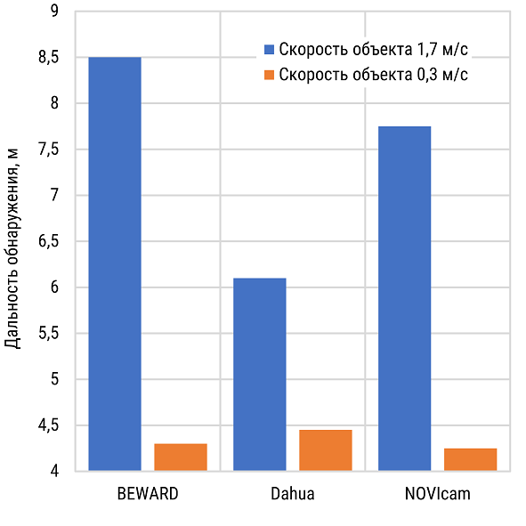 Рисунок 5 Дальность обнаружения при: скорость объекта 1,7 м/с (больше-лучше)